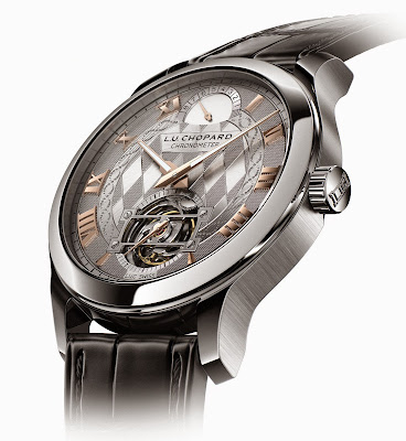 Ausgestattet mit vier Fässern, paarweise gestapelt, hat die LUC 02.17-L-Bewegung eine neun-Tage-Gangreserve und ist COSC-zertifiziert. Wie bei allen LUC-Uhren ist es wunderschön fertig. Der Fall ist Platin mit einem Durchmesser von 43 mm. - SJX